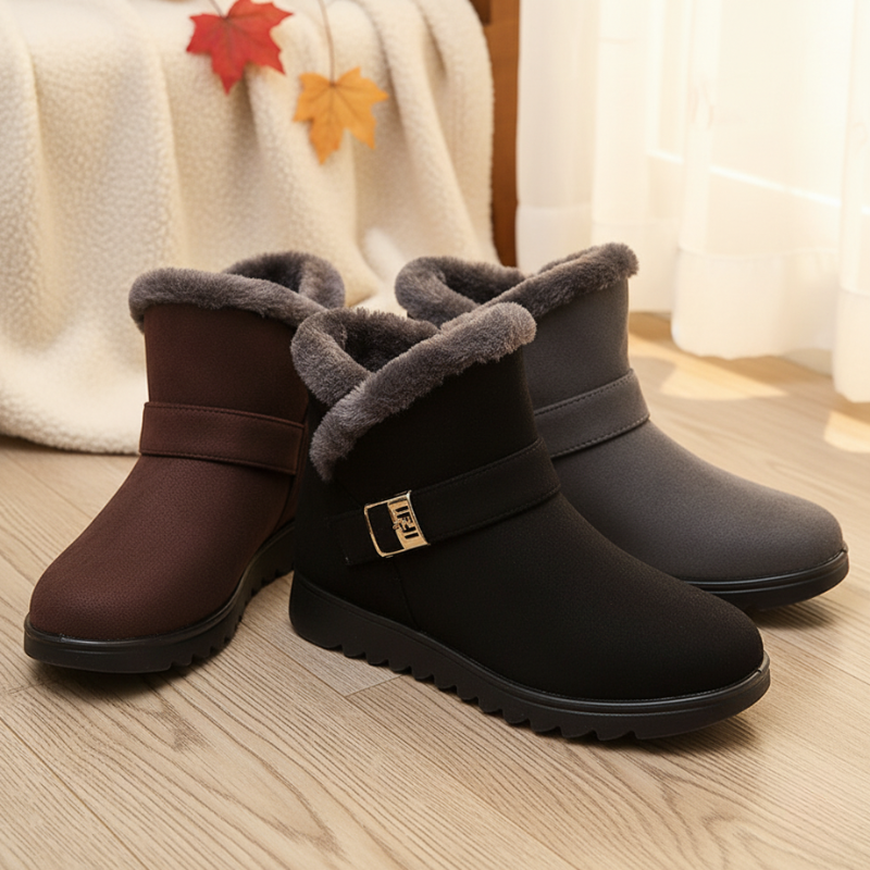 Te ciepłe, zimowe botki zostały stworzone z myślą o maksymalnym komforcie w chłodne dni. Miękkie, futerkowe wnętrze otula stopę i świetnie izoluje przed zimnem, a antypoślizgowa podeszwa zapewnia stabilność na mokrych i śliskich nawierzchniach. Delikatna klamra nadaje im elegancki, kobiecy akcent, dzięki czemu idealnie sprawdzą się zarówno na co dzień, jak i podczas zimowych spacerów.